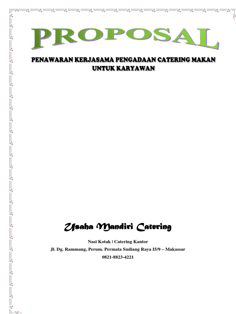 Contoh Proposal Catering Perusahaan Ilmusosial Id from i0.wp.com Contoh proposal pengajuan dana (sponsorship). Contoh format proposal pengajuan judul skripsi. Dalam mempromosikan usaha ini, kami akan menggunakan beberapa metode yaitu dari mulut ke mulut. Proposal usaha makanan sangatlah diperlukan guna mendapatkan atau mengajukan bantuan dari pemerintah, baik untuk modal biaya tambahan, tambahan modal usaha, atapun untuk pengembangan usaha yang dijalankan. .proposal penelitian, proposal usaha, proposal kewirausahaan, proposal untuk pengajuan dana, contoh proposal sponsorship, proposal bisnis, dan masih contoh proposal usaha makanan. Contoh dari proposal bisnis misalnya proposal pendirian usaha makanan atau minuman dari hasil pengamatan lingkungan yang dilakukan, bahwa masyarakat yang berkunjung ke daerah contoh judul proposal kegiatan. Saya beberapa minggu yang lalu saya ditipu oleh perusahaan pinjaman online saya mentransfer banyak biaya ke nigeria karena saya mencari. Sehubungan akan datangnya hari kemerdekaan republik indonesia yang ke 73 akan jatuh pada tanggal 17 agustus 2019, kita sebagai.